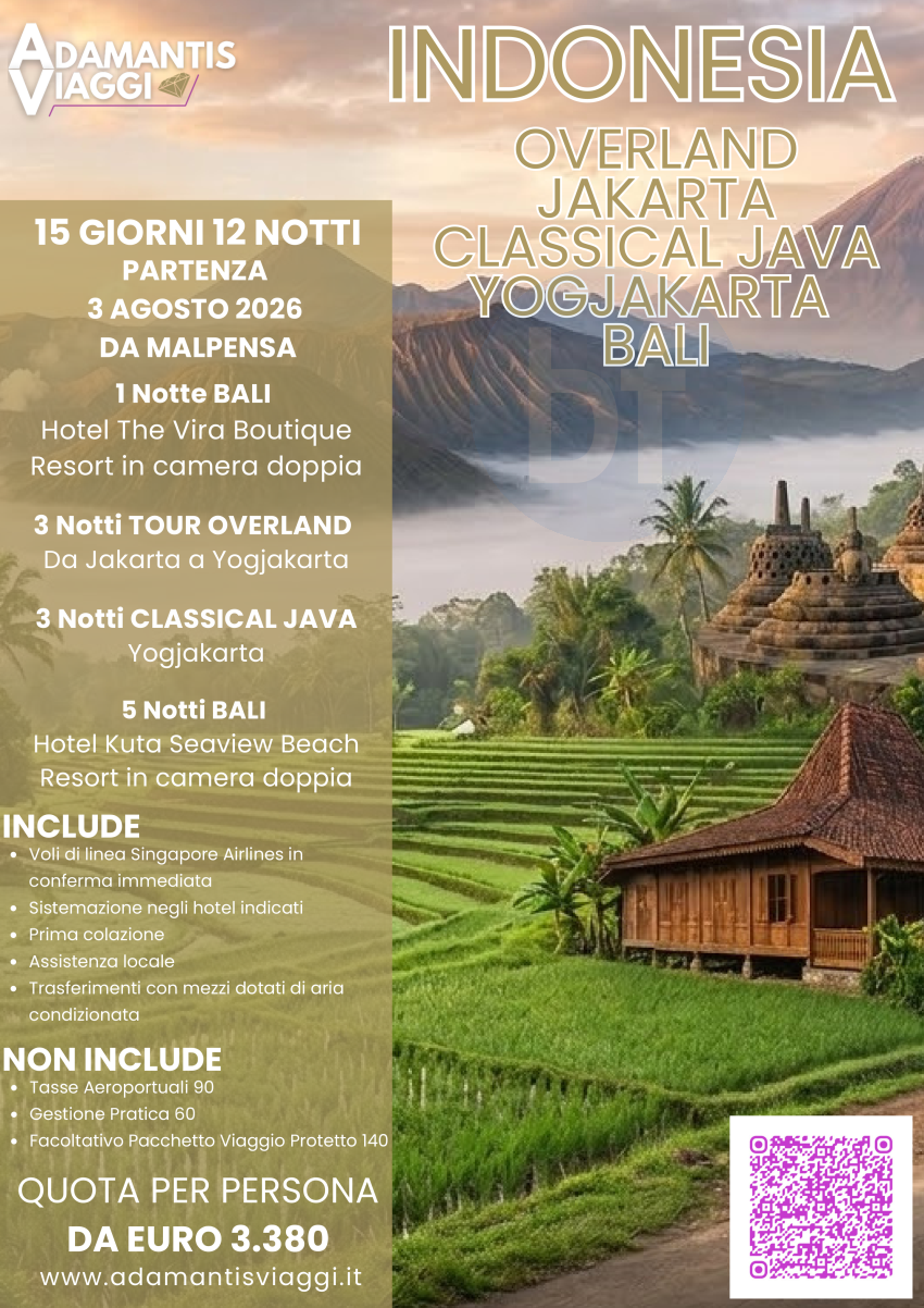 Indonesia Tour Overland Jakarta Classical Java Yogjakarta Bali - 03 Agosto 2026