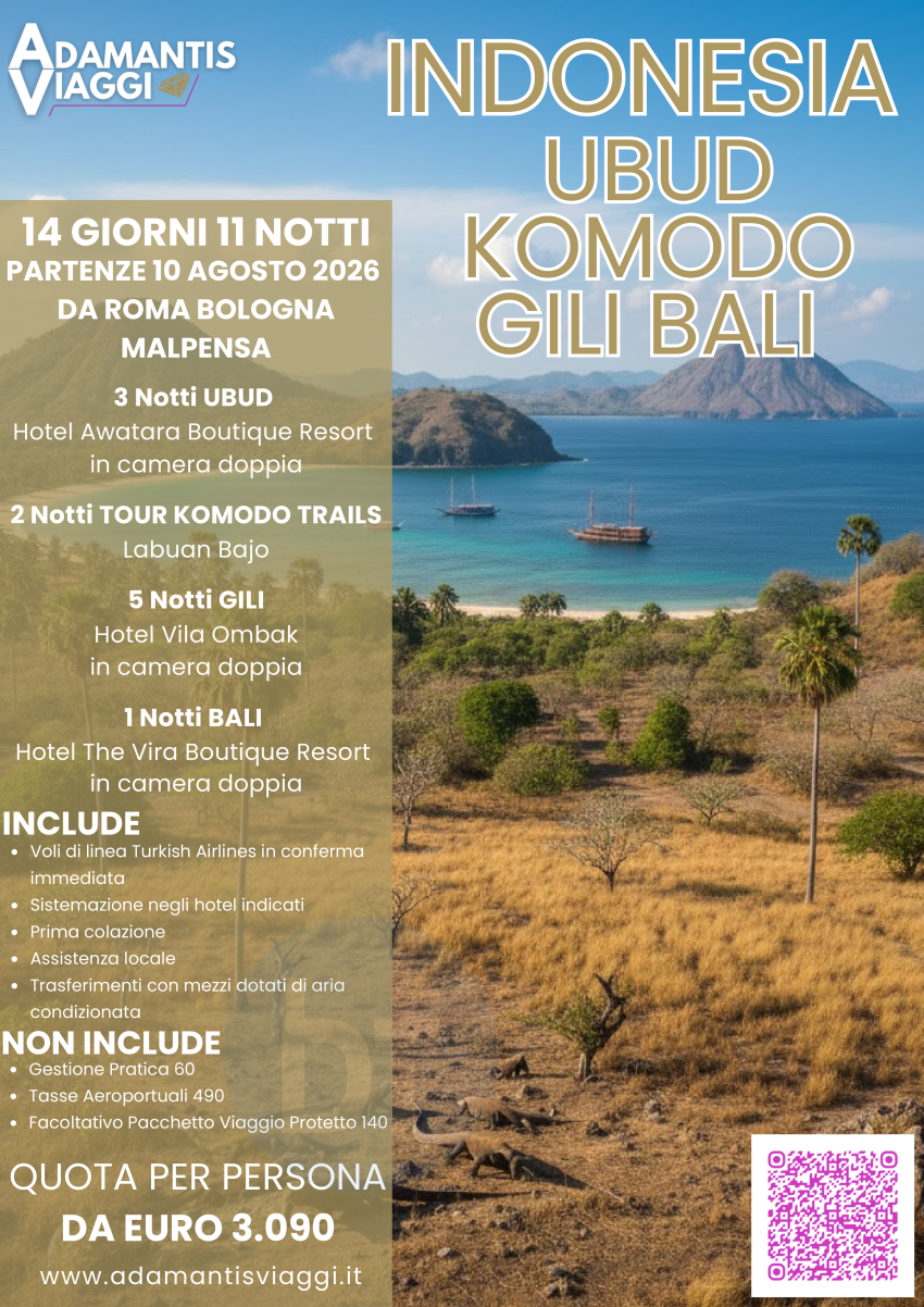 Indonesia - Ubud Tour Komdoo Trails Gili Bali 10 Agosto 2026