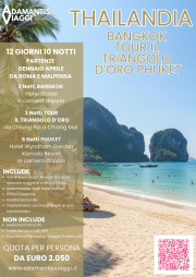 Thailandia - Bangkok Tour Il Triangolo 'oro Phuket Gennaio Aprile