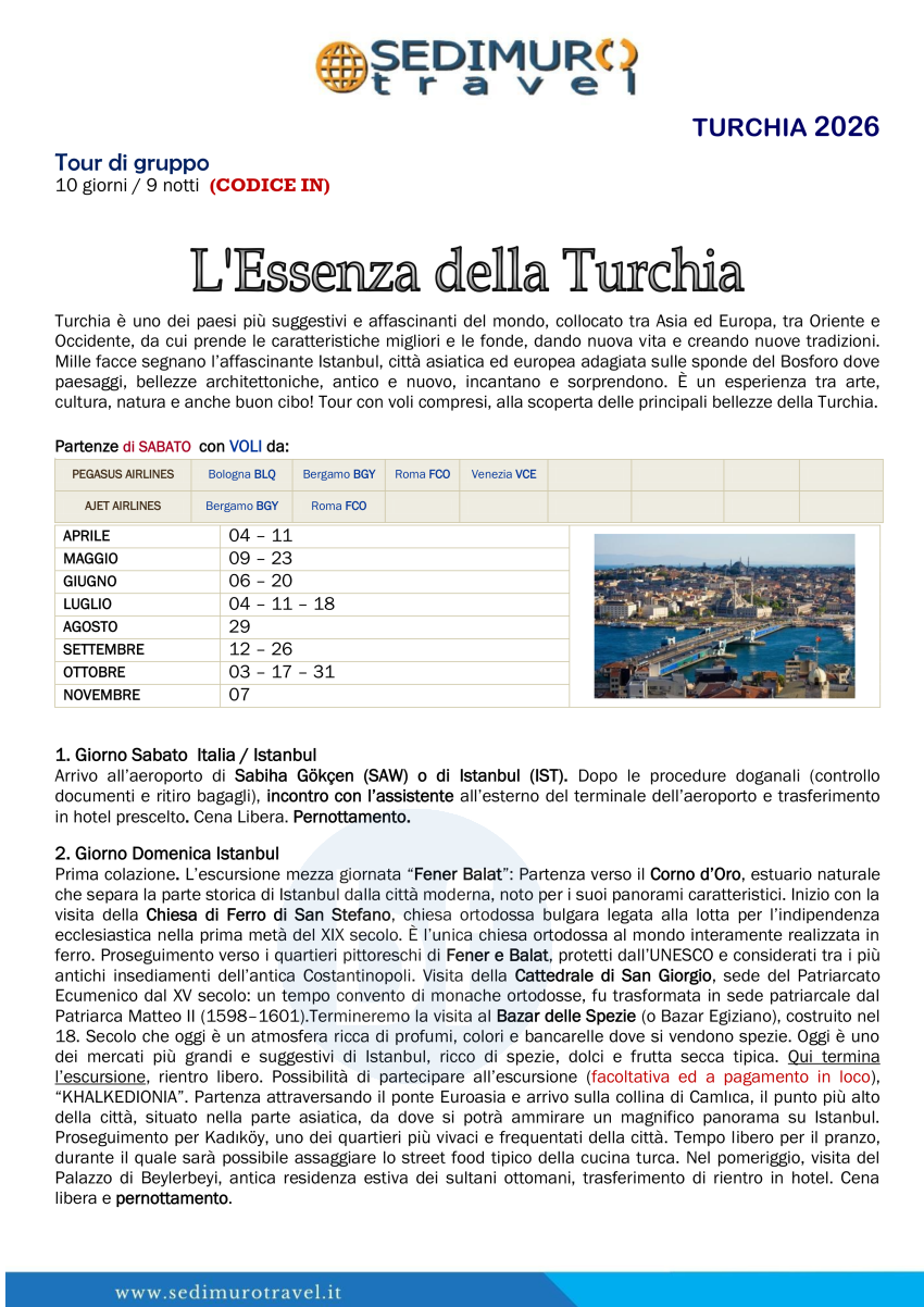 L’Essenza della Turchia con volo da BGY, BLQ, FCO e VCE di sabato 10 giorni